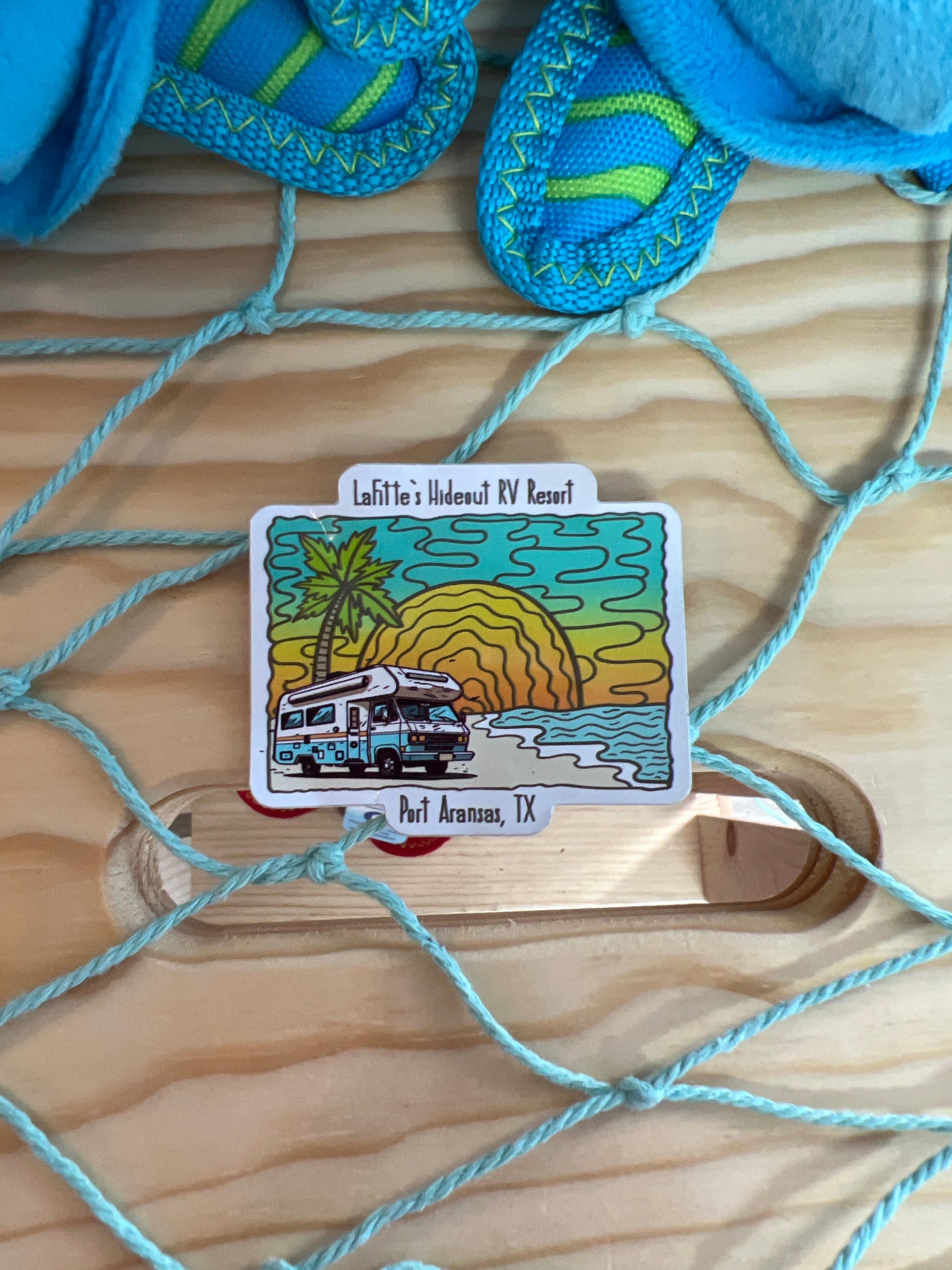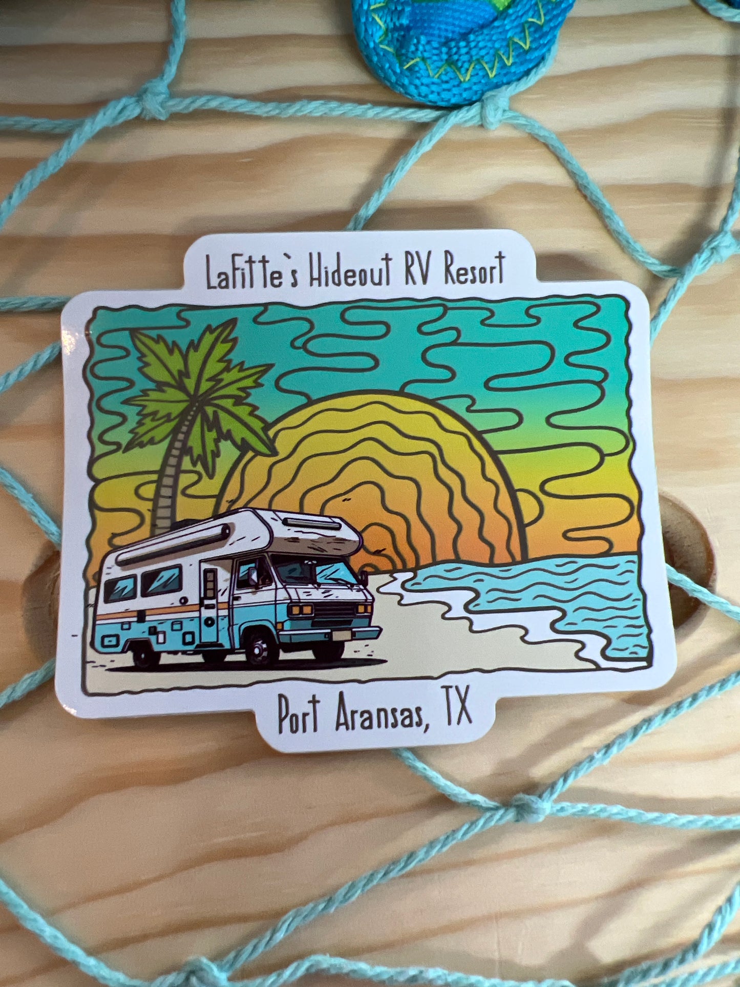 RV On the Beach Scene - LaFitte's Hideout - Port Aransas, TX Sticker